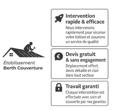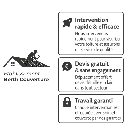 Avec Etablissement Berth Couverture, vous faites le choix d’un partenaire fiable, local et passionné, dédié à la protection et à l’entretien de votre toiture.